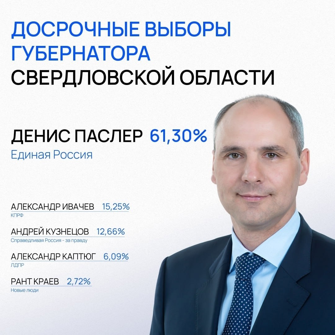 Врио губернатора Свердловской области Денис Паслер поблагодарил жителей региона за активную гражданскую позицию на выборах губернатора