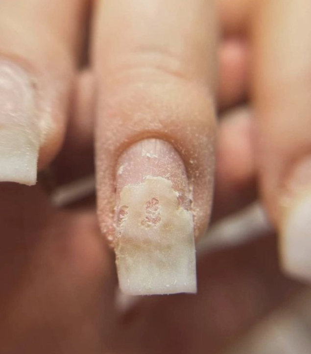 ОТСЛОЙКА — ПОРА ОБНОВИТЬ МАНИКЮР Это опасно! Под отслаивающимся гелем образуется пустое пространство, где может скапливаться влага и грязь — идеальная среда для развития грибка и плесени. Я уже столкивалась со случаями, когда клиенты приходили на коррекцию спустя почти 1.5-2 месяца и обнаруживали неприятные сюрпризы под ногтями в виде плесени под отслойками. Это не вина мастера — это естественный процесс, если не соблюдать сроки носки! Рекомендуемый срок коррекции — 3-4 недели. Берегите здоровье ногтей, записывайтесь на коррекцию вовремя! Если заметили отслойки — лучше не откладывайте визит к мастеру