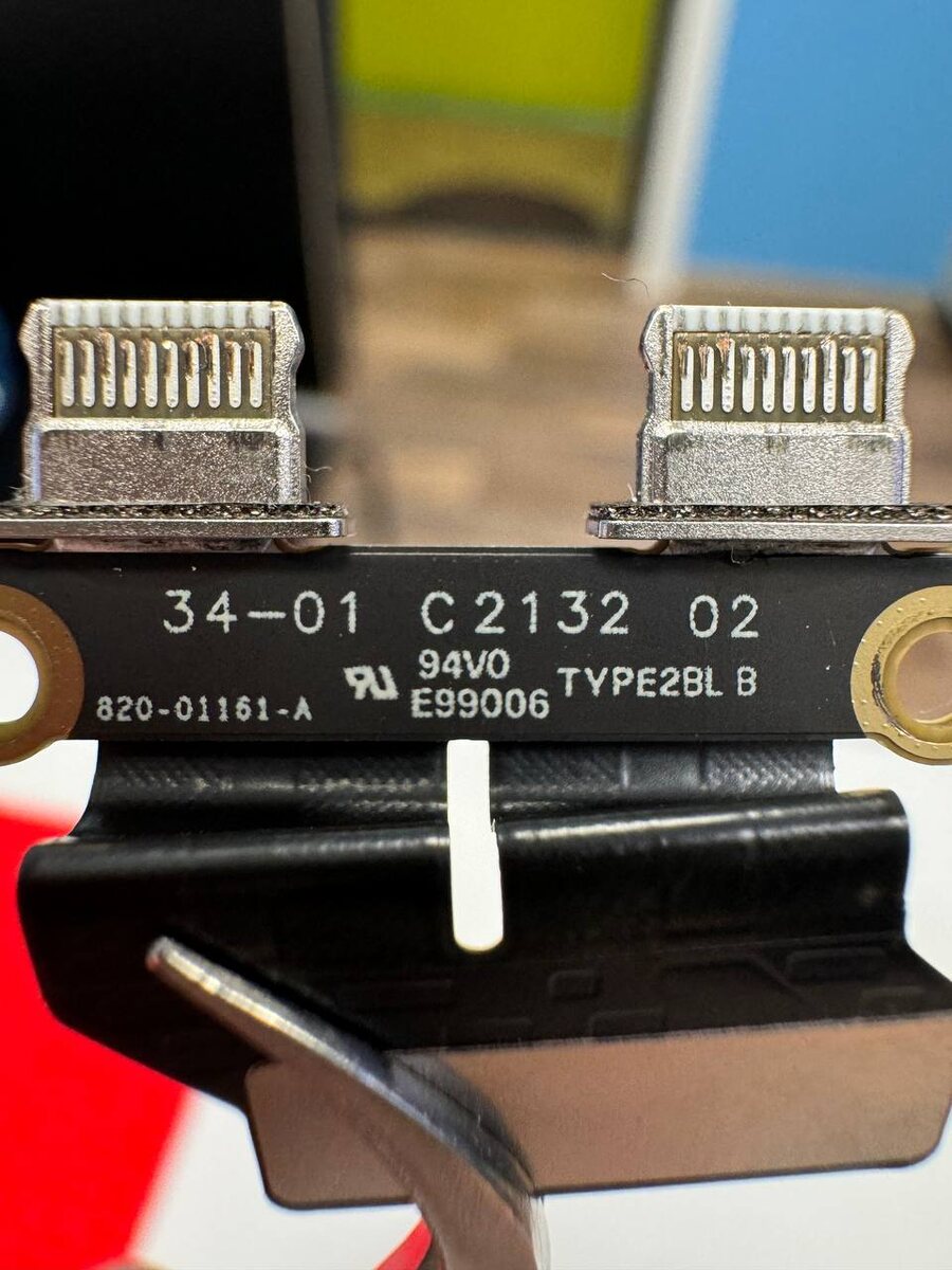 MacBook Air 13” A2337 один порт перестал работать. После осмотра видно поврежденные контакты разъема usb-c. Контакты сплюснуты, замыкают. Если продолжать пользоваться так, высокая вероятность что сгорит плата.