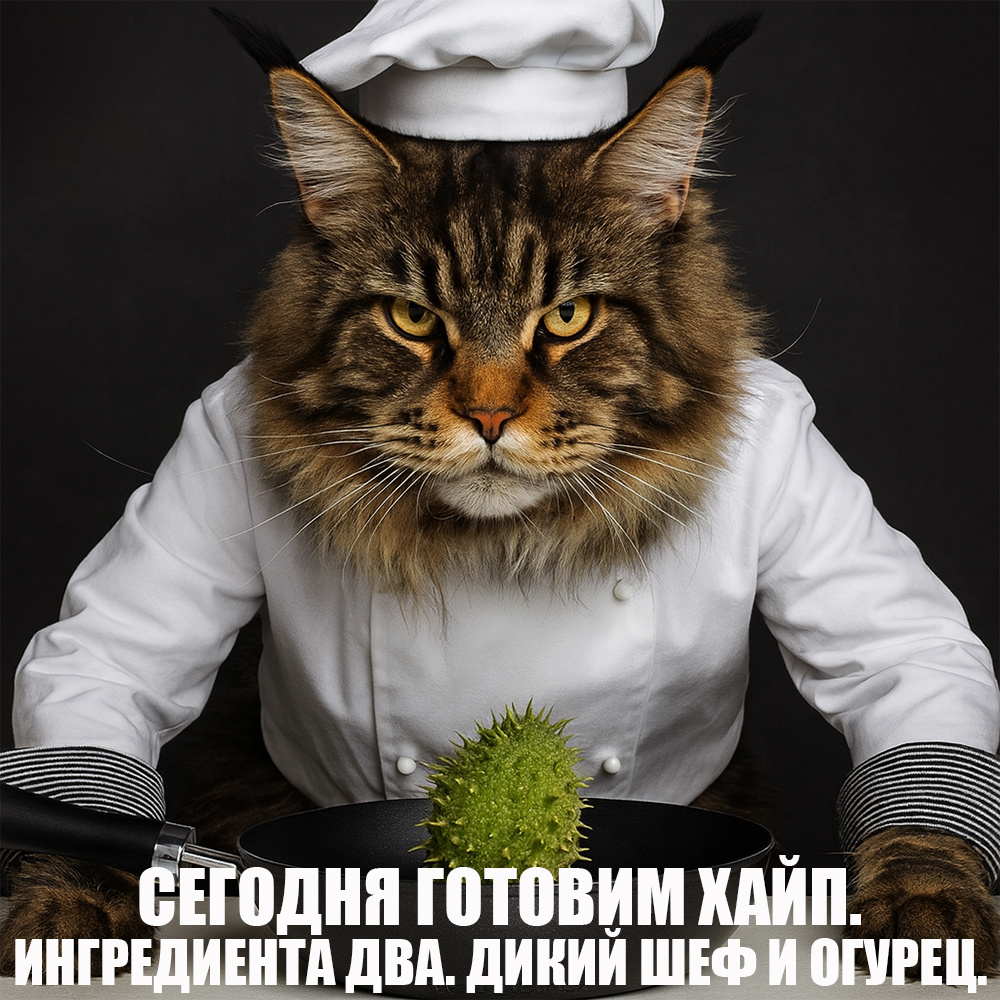 Так что, кожаные… пока вы смеётесь над огурцами, мы превращаем их в легенду. Учитесь у нас, ведь дикий хайп по-настоящему идёт только котам.