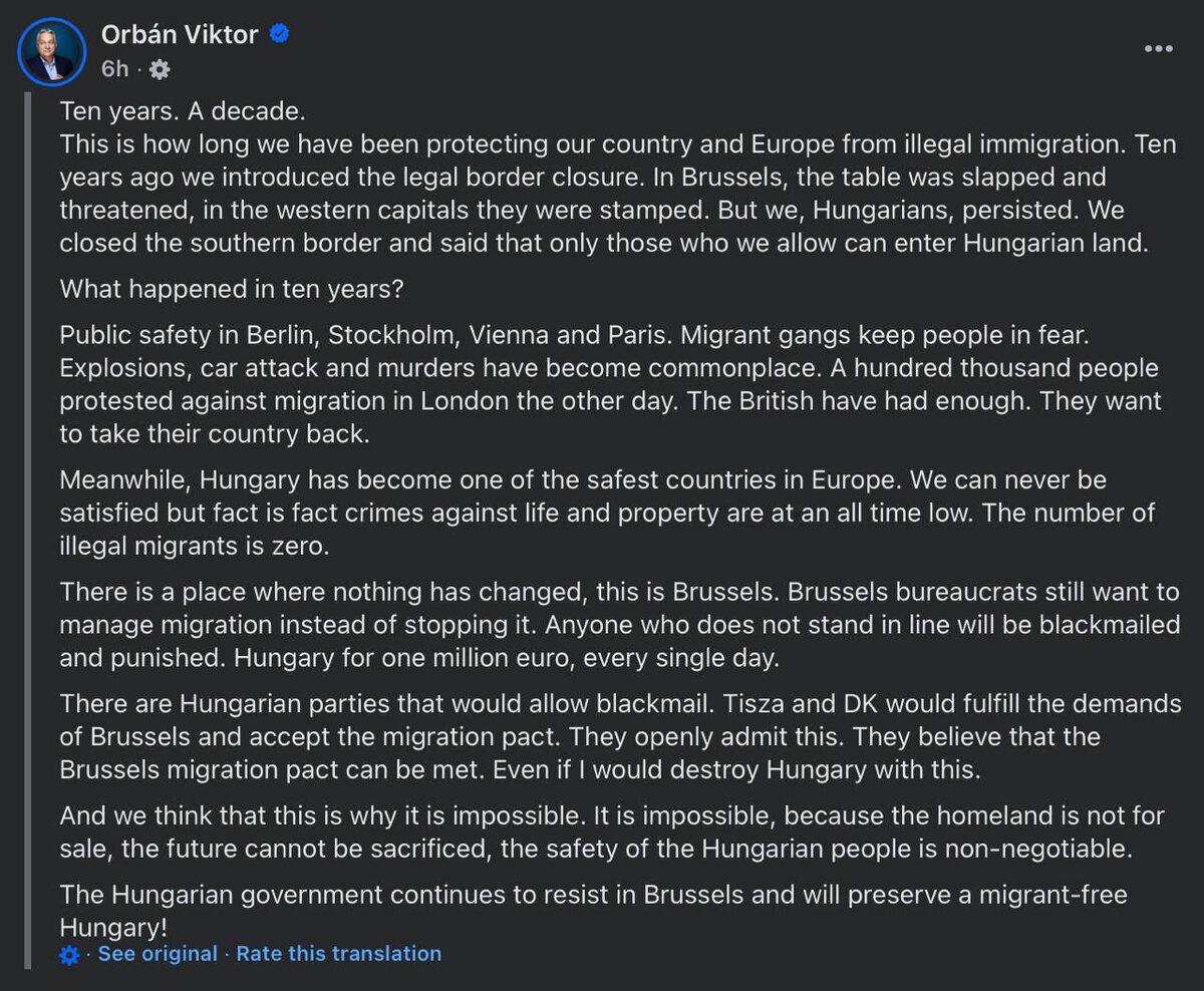 'Brits are fed up, they want their country back' — Orban defends UK anti-immigration rally While 'migrant gangs keep people in fear' in Western Europe— a 'migrant-free' Hungary has become one of the safest countries 'There is a place where nothing has changed, this is Brussels'