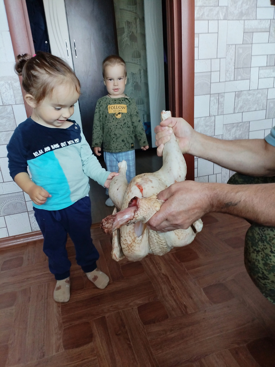 У нас сегодня дедуля был дома, поэтому пытались опять переделать тысячу дел. Я писала уже, что мы знакомым заказываем бройлеров, индюков. Они для нас выращивают, мы покупаем, зная, чем птица кормится. Бройлеров всех в автоклаве переработали, а сейчас купили индюков.