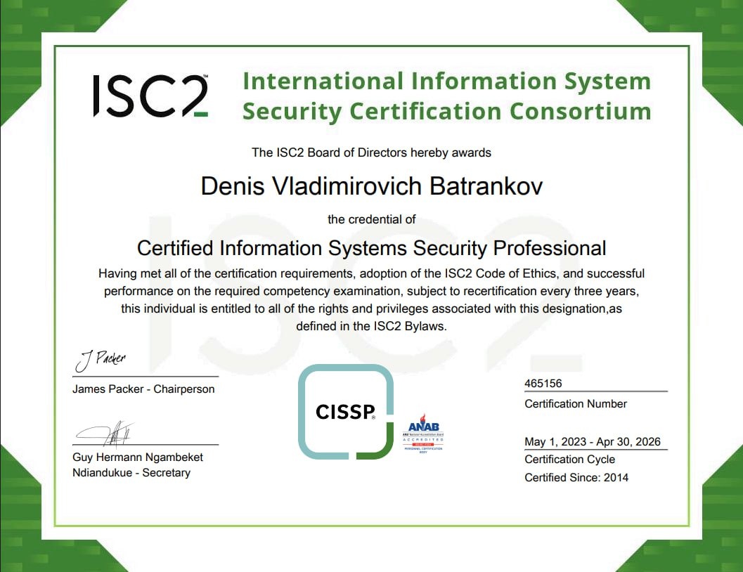 Каждый год продлеваю сертификат CISSP. Интересно, сколько людей с CISSP сертификатами в России?