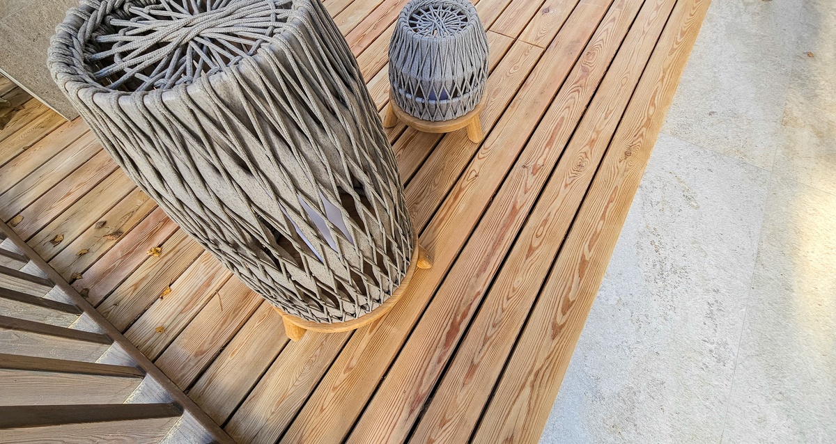 ✔️ Лиственница: Природный материал, насыщенный смолой и камедью, защищающими дерево от влаги, гнили и вредителей. Рекомендуемый сорт — «1» ГОСТ и «Экстра»: идеально ровная поверхность, однако запасы ограничены.
