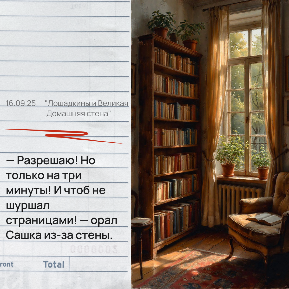 — Разрешаю! Но только на три минуты! И чтоб не шуршал страницами! — орал Сашка из-за стены.