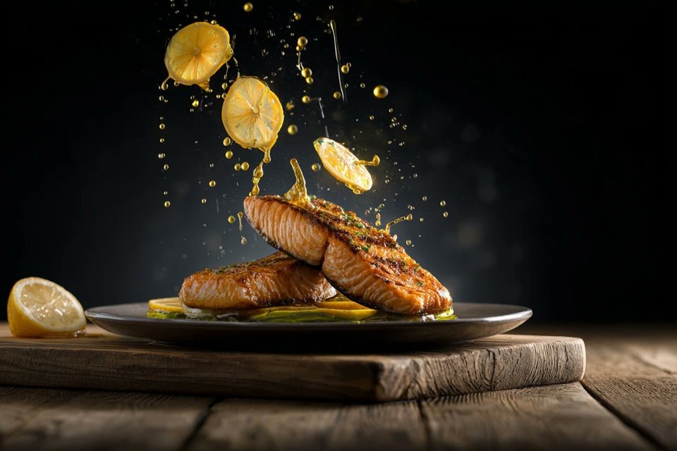 Фотография еды в Midjourney Шаблон промпта: Advertising-style food photography of [объект 1] arranged on a rustic table, with [объект 2] floating above in mid-air and a splash of [объект 3] frozen in motion. High-resolution photo manipulation with selective soft focus, clean negative space for text, dramatic lighting, and crisp detail. Пример: High-end advertising food photography of a stack of golden pancakes elegantly plated on a rustic wooden table, with blueberries suspended mid-air above, and a dynamic splash of maple syrup frozen in motion. Ultra high-resolution photo manipulation, dramatic directional lighting, sharp textures, soft selective focus, and clean negative space for headline placement. Designed for premium editorial or commercial use. --ar 3:2 --v 7 ❤ Примерами своих генераций вы можете поделиться в нашем уютном чатике @neuro_smoking #midjourney@dailyprompts