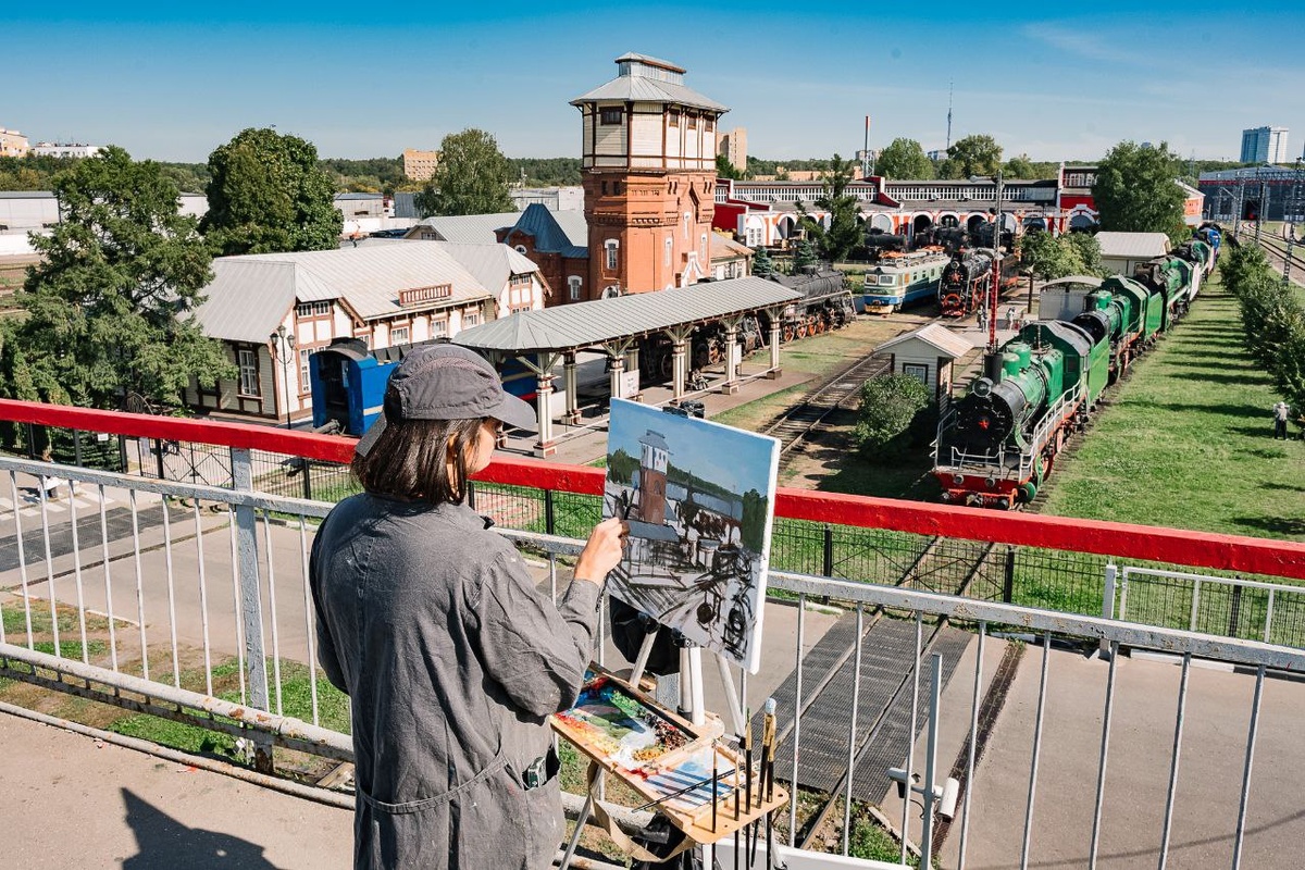 Каждый художник желает знать… Более 30 уникальных авторских работ – таков результат четвертого ежегодного железнодорожного пленэра «Колесо истории». 👍 Он прошел в минувшие выходные на двух площадках Московской железной дороги: в субботу в единственном в России музейно-производственном комплексе «Подмосковная», а в воскресенье – на территории экспозиционной площадки «История Московской окружной железной дороги». 🚂 Живописцы вдохновенно рисовали паровозы, исторические здания и интерьеры, и даже писали портреты. В качестве моделей с удовольствием выступили сотрудники подразделения по сохранению исторического наследия в железнодорожной форме разных лет. 🤝 Стать участником пленэра мог любой желающий. По сложившейся традиции среди гостей были студенты и преподаватели Московского государственного академического художественного института имени В.И. Сурикова. 🟥 Выставка лучших работ состоится в Музее Московской железной дороги на Павелецком вокзале. Её открытие приурочат ко дню ОАО "РЖ