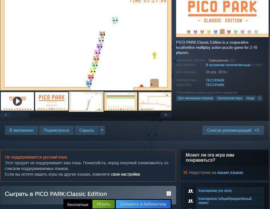 В Steam стартовала акция, которая продлится еще неделю. Пользователи могут абсолютно бесплатно добавить в свою библиотеку игру PICO PARK: Classic Edition. Это отличная возможность пополнить свою коллекцию увлекательной кооперативной головоломкой, не тратя при этом ни копейки. 🎁PICO PARK: Classic Edition — это игра, которая предлагает уникальный геймплей, основанный на командной работе. В ней можно играть компанией до 10 друзей, что делает ее идеальным выбором для веселых вечеров в кругу близких. 👥Особенностью этой акции является то, что, добавив игру в библиотеку сейчас, она останется у вас навсегда. Это значит, что вы сможете наслаждаться PICO PARK: Classic Edition в любое удобное время, даже после завершения акции. 🎮Не упустите шанс получить эту увлекательную игру бесплатно. PICO PARK: Classic Edition — это отличный способ провести время с друзьями, развивая командный дух и наслаждаясь интересными головоломками. 🧩 🔗 Больше новостей смотрите на News.Mentup