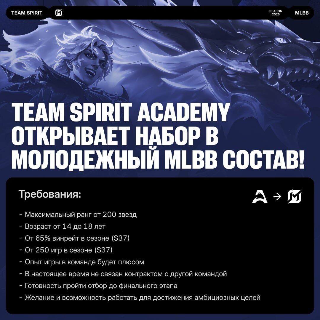 Team Spirit Academy завершает прием заявок в молодежный состав по Mobile Legends: Bang Bang