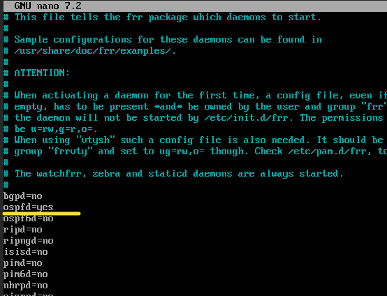 Обеспечьте динамическую маршрутизацию: ресурсы одного офиса должны быть доступны из другого офиса. Для обеспечения динамической маршрутизации используйте link state протокол на ваше усмотрение. Устанавливаем пакет frr # dnf install -y frr Для настройки внутренней динамической маршрутизации для IPv4 используем протокол OSPFv2 Для настройки ospf необходимо включить соответствующий демон в конфигурации /etc/frr/daemons # nano /etc/frr/daemons В конфигурационном файле /etc/frr/daemons необходимо активировать выбранный протокол для дальнейшей реализации его настройки: ospfd = yes - для OSPFv2 (IPv4) Включаем и добавляем в автозагрузку службу FRR # systemctl enable --now frr Переходим в интерфейс управление симуляцией FRR при помощи vtysh (аналог cisco) # vtysh Входим в режим глобальной конфигурации hq-rtr.au-team.irpo# configure terminal Переходим в режим конфигурации OSPFv2 hq-rtr.au-team.irpo(config)# router ospf Переводим все интерфейсы в пассивный режим hq-rtr.au-team.irpo(config-route