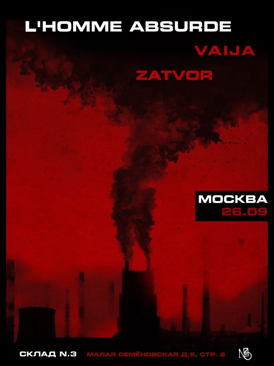 Мск 2025.09.26 L'Homme Absurde / Zatvor / Vàija † Склад №3 19:30 800p † vk.com/lhommeabsurde_vaija_zatvor2609