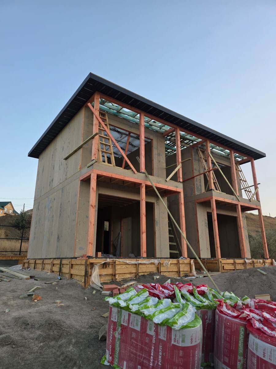 Добрый день, друзья! Мы завершили возведение стен второго этажа и приступили к кровельным работам в Коктебеле. Стропильная система крыши готова, сейчас утеплим по потолочным балкам и накроем металлочерепицей. Строим гостиницу для наших подписчиков. Технология проверенная годами - бетонный фундамент, стены из СИП GREEN BOARD, межэтажное перекрытие из двутавровой балки. Скоро будет завершено кровельное покрытие, а потом, после небольшой паузы, окна и отделка. А пока мы строим, присылайте ваши эскизы на просчет стоимости ,+79782617393