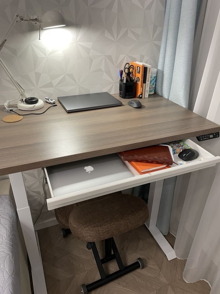 Уютное рабочее место для работы стоя дома! 🏡 ✨ Столешница толщиной 32 мм цвет Орех Сопрано ✨ Надежная и проверенная временем улучшенная рама Мотор Ап с регулировкой 73-120 см и динамической нагрузкой до 100 кг ✨ Подстольный металлический вместительный ящик для хранения канцелярии, ноутбука ✨ Под столом удобно разместился табурет-трансформер Вы можете создать своё идеальное рабочее место: 🌐 StolStoya.ru 📞 88003004622 - По РФ 📞 +79912376880 - Для Москвы 🏢 Шоурум в Москве - ул. Наметкина д. 8, стр. 1 🏢 Шоурум в СПб - Малоохтинский проспект, д.94 лит.А