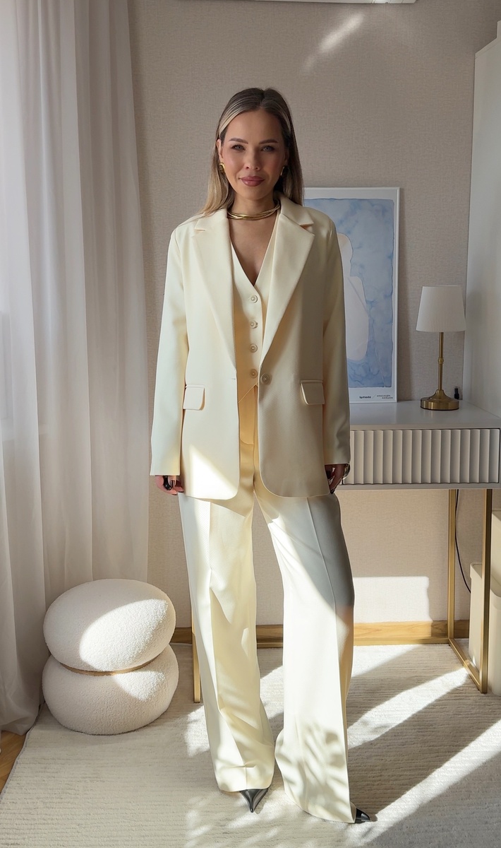 На выходных убирала летние вещи и поняла, что этот костюм не хочу убирать🍒 Настолько мне понравилось летом ходить в этом костюме. Удобно, функционально и красиво. Что решила вписать его в осенние образы🍂 Кто вообще сказал, что осенью и зимой носим только темные оттенки?🤔 Нравится, как сочетается костюм с коричневыми, серыми цветами. Чтобы образ увести в более осеннее настроение - достаточно взять сумку в темных тонах. Костюм тройка, на мне размер 44👌 Есть еще другие цвета - коричневый, серый, красный🔥оливковый. В общем вот ссылка WB.