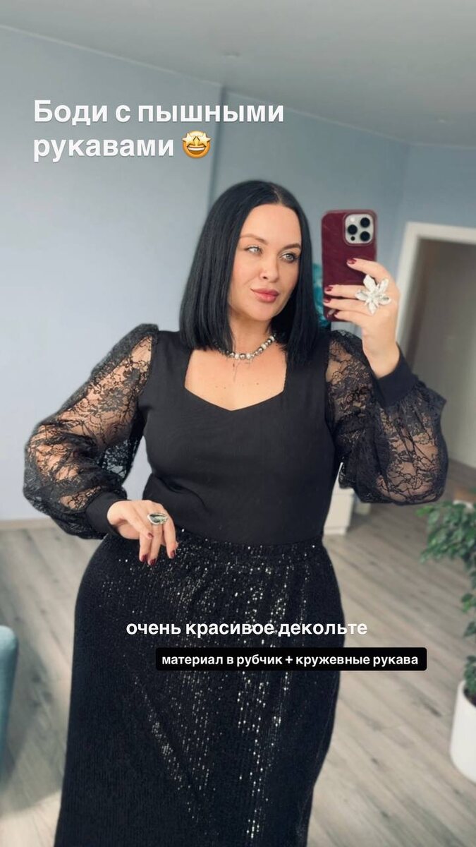 Черное боди с красивым декольте 🔥