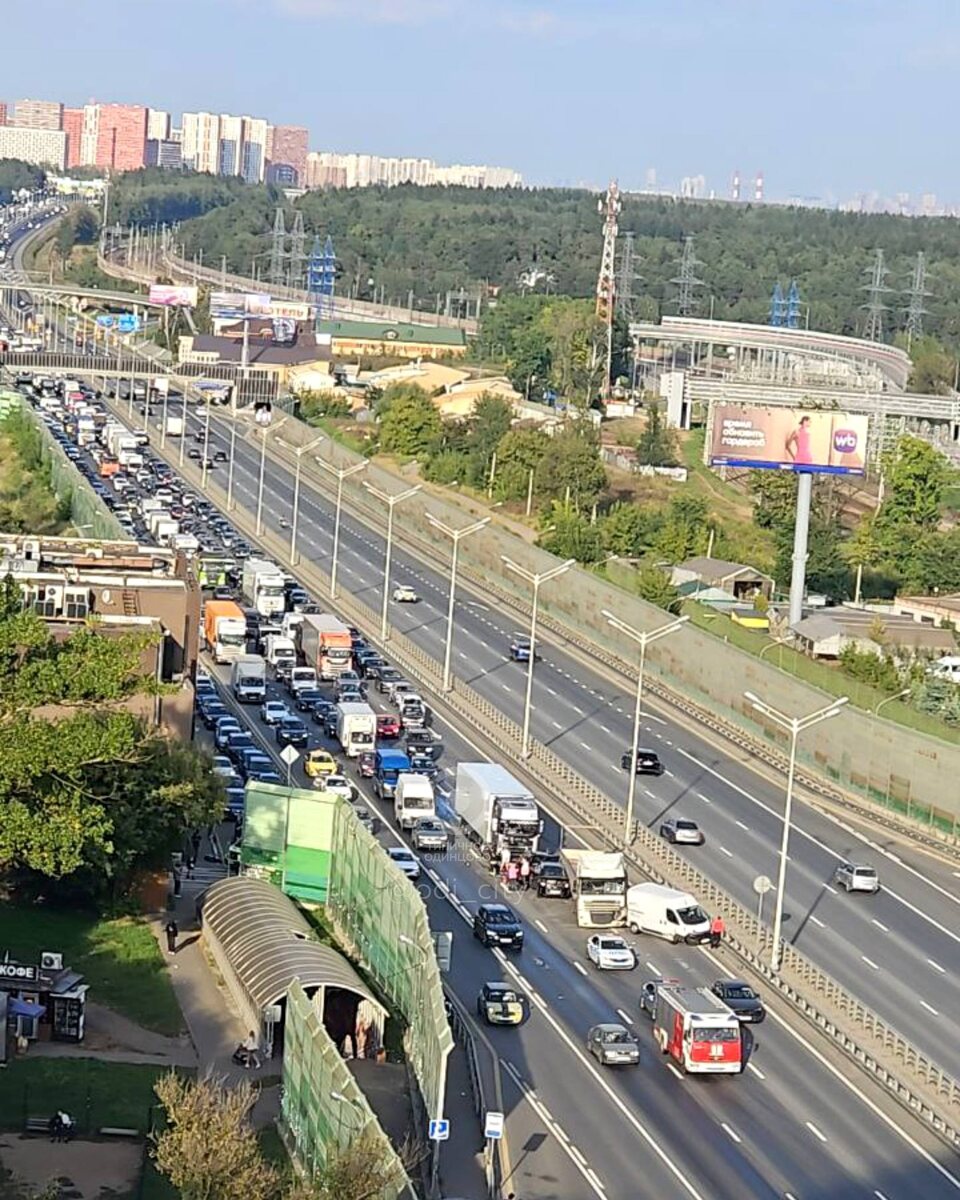 Из-за аварии на Минском шоссе в Лесном Городке, пробка по направлению в область растянулась от ЖК «Одинцово-1» Источник: Открыть