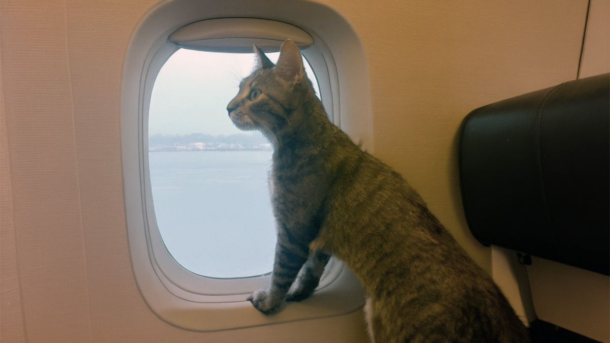 Как кошка с котёнком оказались на борту самолёта, никто не знает... Более того, их никто так и не заметил до взлёта.
