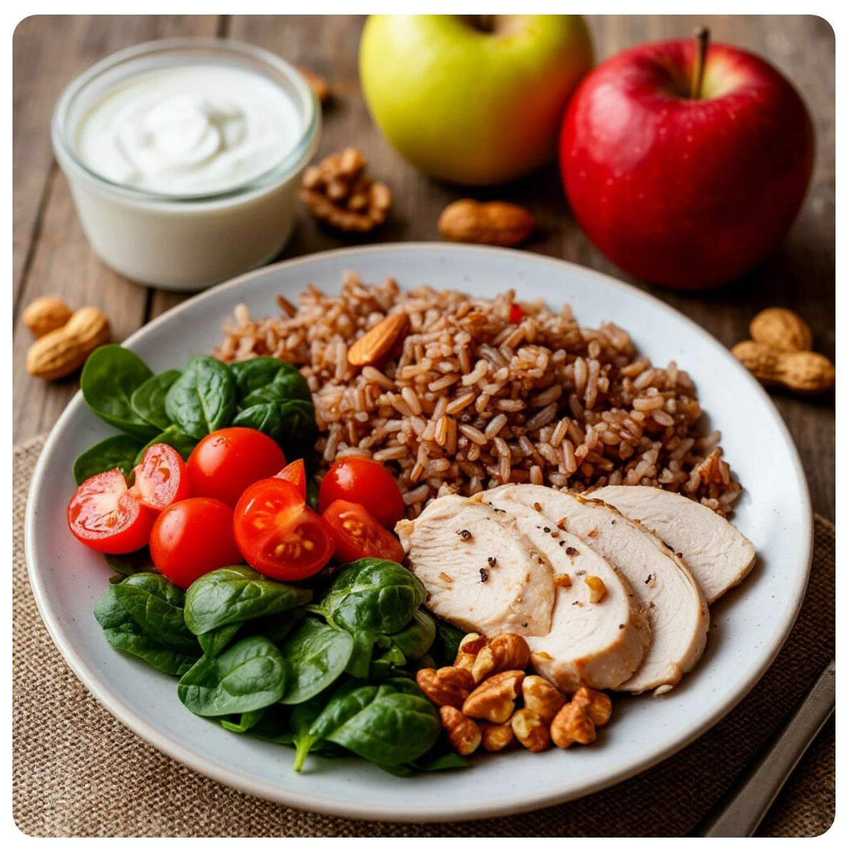 - Яблоко с горстью орехов