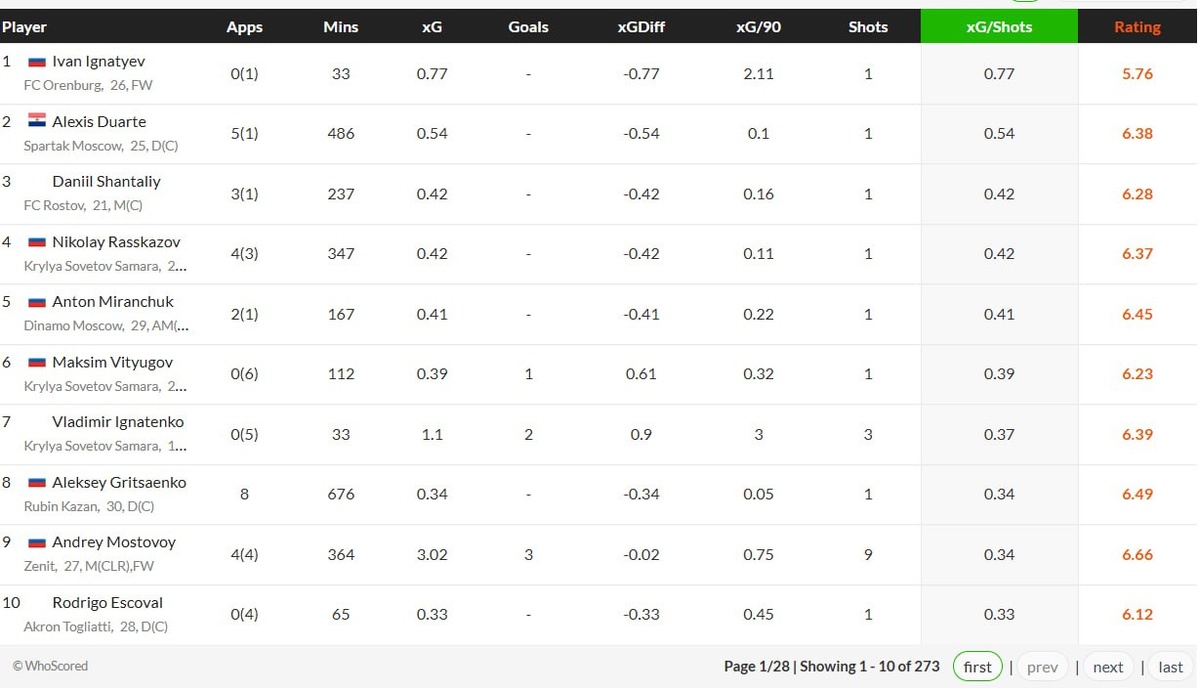 😆 | Грицаенко - 8-й в РПЛ по среднему xG на один удар - 0,34.