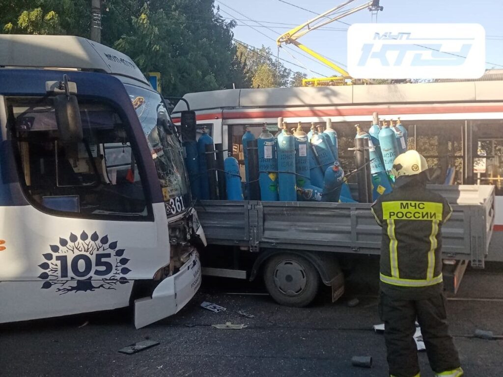 15 сентября в центре Краснодара произошло ДТП с участием грузовика и двух трамваев. Инцидент случился недалеко от пересечения улиц Гоголя и Леваневского. По данным КТТУ, водитель автомобиля, перевозившего кислородные баллоны, не уступил дорогу общественному транспорту. В результате грузовик оказался зажат между трамвайными вагонами. В районе пересечения улиц Гоголя и Леваневского из-за ДТП с участием трамвая стоит движение маршрутов № 1, 4, 5, 8, 11 и 15 в оба направления, — сообщили в телеграм-канале МУП «КТТУ». В результате столкновения грузовик и один из трамваев получили серьезные повреждения. Движение на участке оказалось полностью парализовано. Ранее «Краснодарские известия» писали, Бастрыкин потребовал подробный доклад о ДТП с детьми в Армавире.