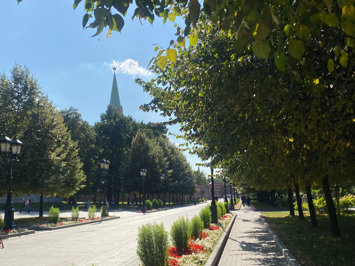 Кремлёвский сад великолепен, и все дамы прогуливаются на воздухе, чуть двигаясь, разодетые в пух и прах…