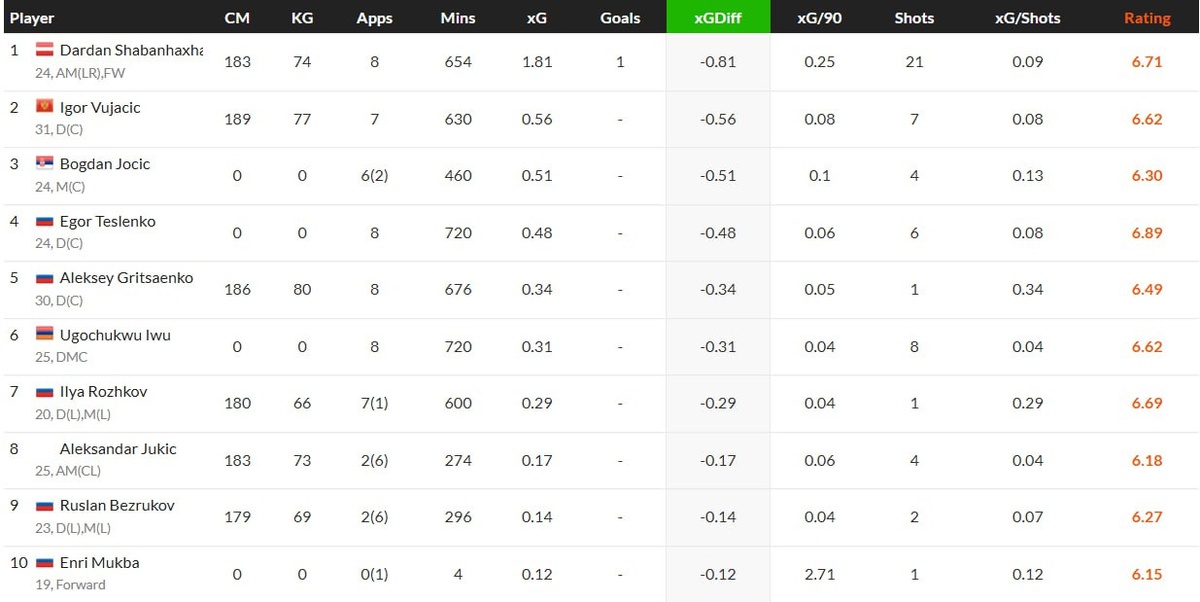 Дардан - худший в Рубине в РПЛ по разнице голов и xG При xG в 1,81 он забил только 1 гол. При этом он второй в этом сезоне по ожидаемым голам в Рубине. Больше него набил только Даку. То же самое с ударами - больше него бил только Даку. ❤️ Злобный Рубин ❤️