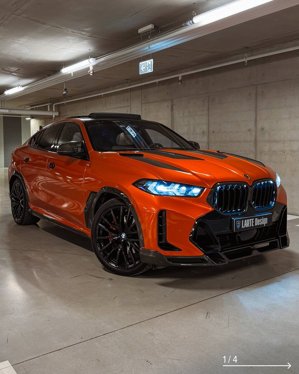 Оранжевый BMW X6 в новом образе от LARTE Design 🍊 Мощный капот, спортивный передний сплиттер, диффузор с дополнительными стоп-сигналами и насадками на выхлоп — каждая деталь усиливает характер этого кроссовера! Важная деталь — выбор дисков. В карусели — три варианта. larte-design.ru/wheels/ #bmw #bmwx6 #lartedesign #x6m #luxurycars #luxurycars