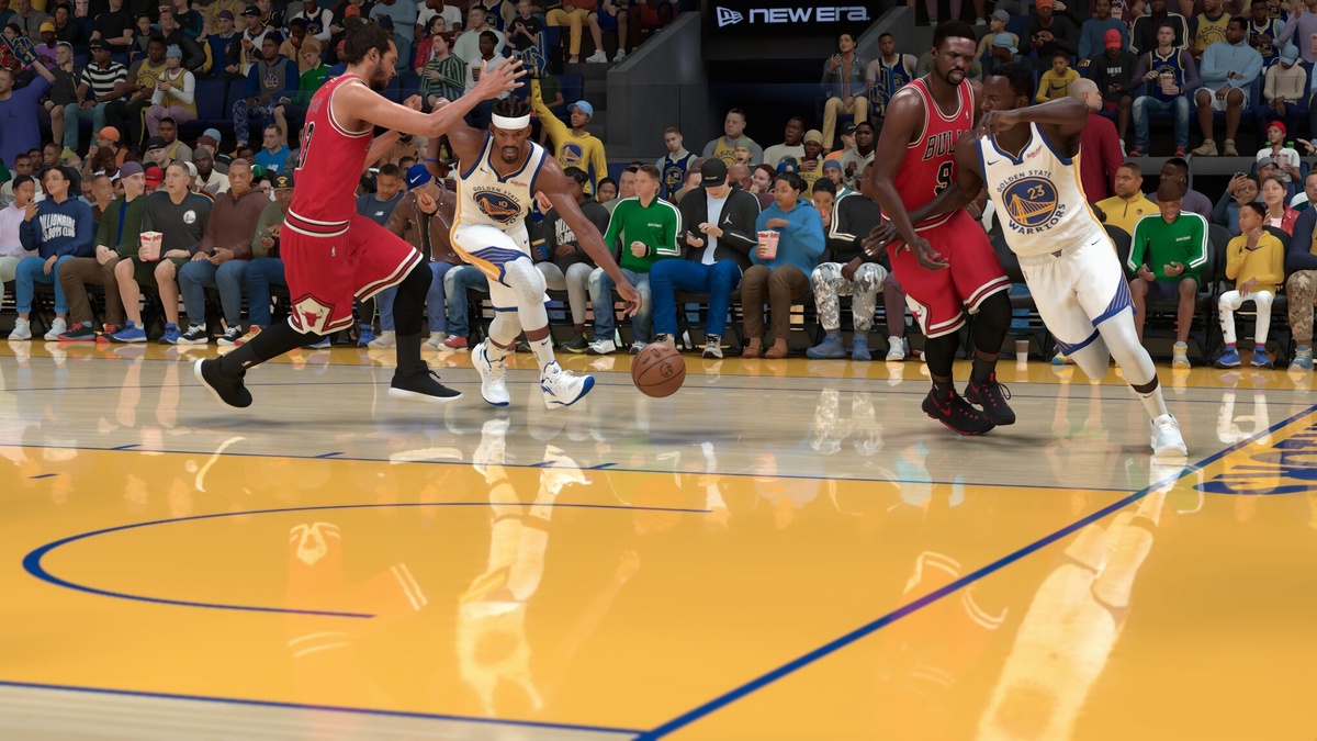 Главный козырь — переработанная система бросков. Новый индикатор выглядит проще и понятнее, чем прошлогодний, а главное — напрямую зависит от ситуации на площадке. Если игрок плотно опекается, «зелёная зона» почти исчезает, и шанс попадания минимален. Если же бросок свободный, то тайминг становится заметно проще. Это добавляет глубины и реализма: теперь важна не только техника, но и позиция на площадке.