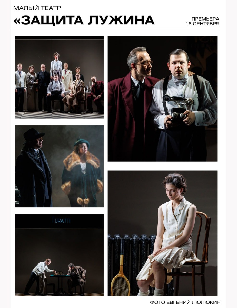 Малый театр сыграет драму шахматного Моцарта ❤️❤️❤️ Речь идёт о спектакле «Защита Лужина». Первую премьеру юбилейного 270-го сезона сыграют уже завтра, 16 сентября. Над постановкой работает режиссёр Владимир Данай. Инсценировку набоковской прозы режиссёр подготовил сам, без помощи драматургов. Программой максимум было по возможности ничего не сочинять за классика; задачу, по оценке постановщика, удалось выполнить на 99,9%. При этом в пьесу не вошли многие мотивы — например, детство главного героя. Не увлёк режиссёра и популярный в последнее время психоаналитический аспект происходящего. «В центре истории творческий человек с невероятными способностями, можно сказать — гений, и так как я тоже связан с творческой профессией, всё это мне особенно интересно/ Кто-то сравнивает Лужина с Моцартом, в детстве он тоже был очень способным ребенком, у него было „звёздное“ детство, а потом в юности всё обрушилось в какое-то непонимание обществом, потому что Моцарт не знал, как „правильно“ себя в