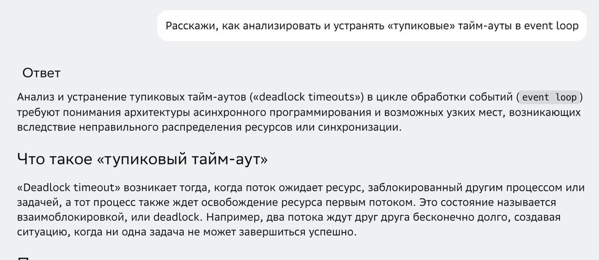 🧵 GigaChat объяснил, как находить и устранять «тупиковые» тайм-ауты в event loop