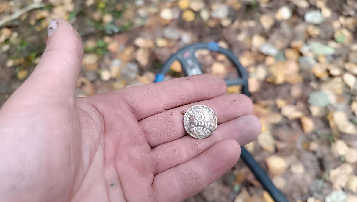 Не прошло и пяти минут, как прибор дал чёткий сигнал. Из влажной земли показалась она – 3 копейки 1969 года.