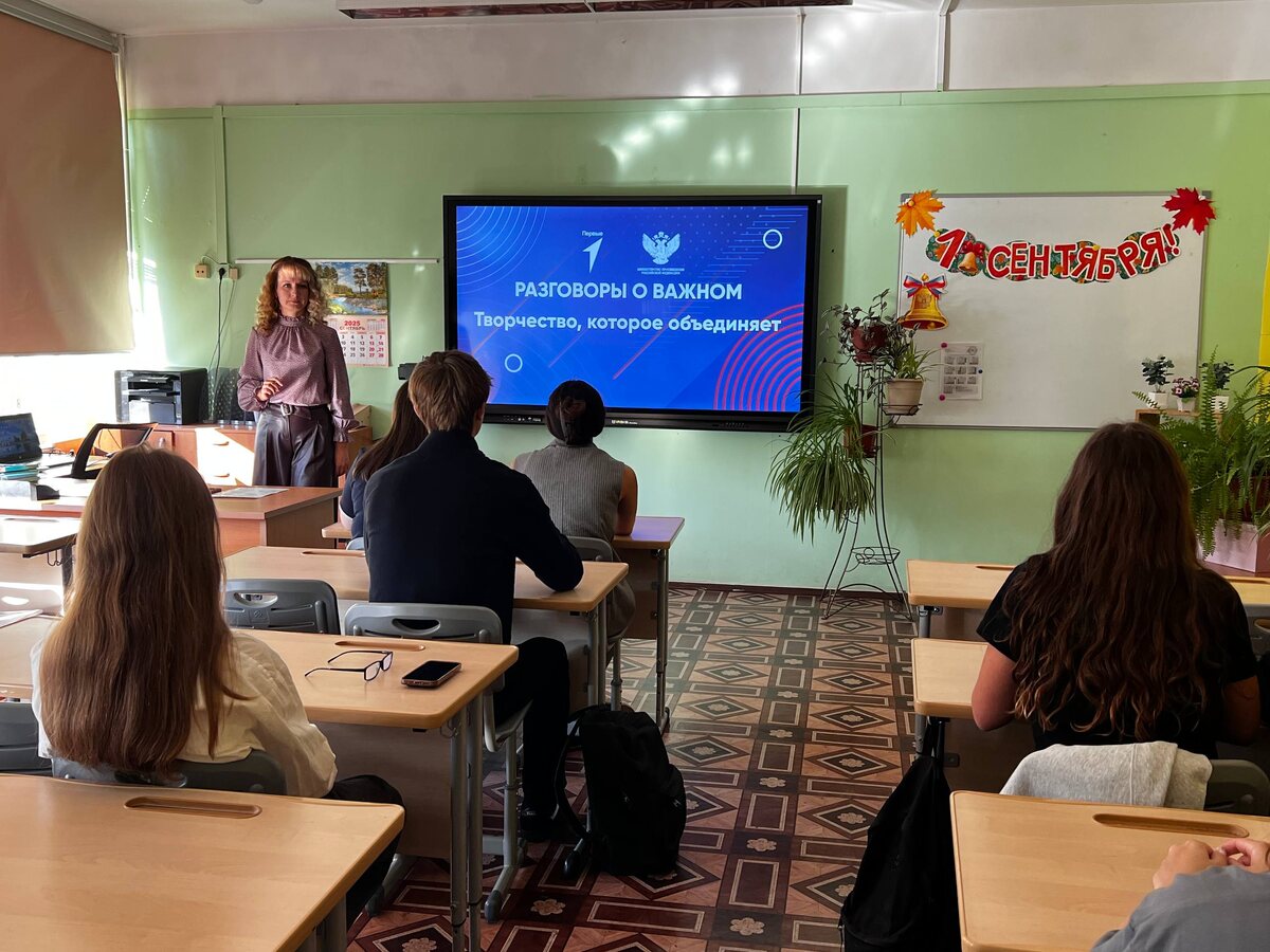 🎨 Творчество, которое объединяет 🌟 В этот понедельник на занятии «Разговоры о важном» ребята вместе со своими преподавателями обсуждали тему, близкую каждому — творчество. Не то абстрактное и далёкое, а то самое, которое живёт рядом с нами: в музыке из наушников, в коротких роликах, снятых на телефон, в книге на прикроватной тумбочке. 🎶 Ребята делились своими находками: кто-то рассказал про любимую песню, кто-то — про собственные рисунки и мечты о выставке, а кто-то признался, что пишет тексты для блогов. Оказалось, что у каждого есть своя история, и все они звучат по-разному, но складываются в единый хор. 🤝 Мы ещё раз убедились: искусство не знает границ. Оно соединяет людей, помогает найти друзей и тех, с кем можно разделить радость открытий. И самое главное — творить можно здесь и сейчас, не откладывая вдохновение «на потом». Даже маленькая идея способна подарить другим силы и веру в себя. ✨ Именно в этом и есть настоящая сила искусства — оно помогает раскрыться каждому и п