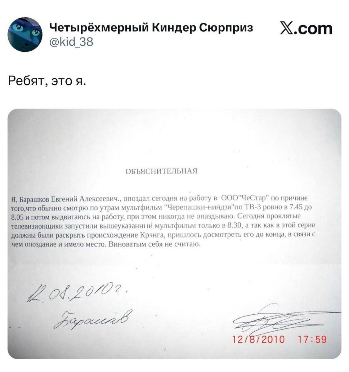 Привет, друзья! Недавно в Твиттере вспомнили забавный случай из прошлого, который ярко иллюстрирует, как поп-культура может влиять на повседневную жизнь. История о мужчине, опоздавшем на работу из-за «Черепашек-ниндзя», стала вирусной. Этот случай поднимает важный вопрос о том, как медиаформаты, особенно те, что ориентированы на детскую аудиторию, влияют на взрослых и их поведение. «Черепашки-ниндзя» — это культовый мультсериал, который завоевал миллионы сердец по всему миру. Он отличается динамичным сюжетом, яркими персонажами и захватывающими приключениями. Неудивительно, что многие люди, в том числе взрослые, были увлечены этим сериалом. Однако случай с объяснительной показывает, что даже взрослые могут быть настолько увлечены медиаконтентом, что это влияет на их повседневную жизнь. Этот случай — не просто забавная история из прошлого. Он заставляет задуматься о том, как современные медиаформаты могут влиять на наше поведение и приоритеты. Важно понимать, что даже если мы считаем се