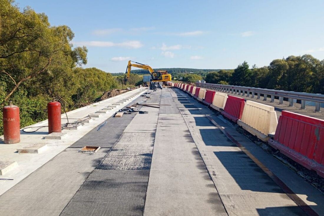Ранее на мосту подняли балки пролетного строения для замены старых резиновых опорных частей на новые, а также выполнили работы по восстановлению подходов к мосту и завершили устройство тротуарных блоков и омоноличивание ме