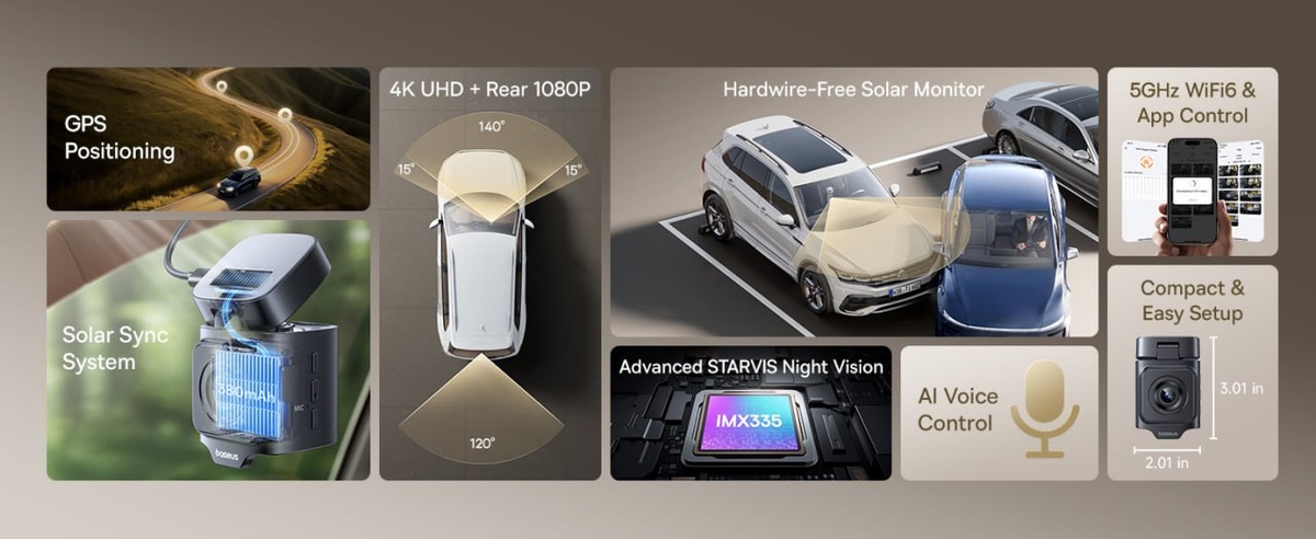 Солнечный (авто)защитник Пока мы живём в XXI веке, китайская компания Baseus предлагает своим клиентам пожить в XXII-м. Они продают комплект камер на автомобиль (передний и задний видеорегистраторы), которые будут работать не только, когда машина едет, но и когда она припаркована. Причём, не высаживая штатный аккумулятор. Ну, при езде камеры и так питаются от автомобильного генератора. А вот на стоянке они будут питаться от встроенного в переднюю камеру аккумулятора ёмкостью 380мАч и включаться только при обнаружении около машины движения или от датчика удара. У них это называется «мониторингом парковки в режиме ожидания». А вот, чтоб гарантировать заявленную автономность в 14 дней, в тот же передний блочок встроена солнечная панелька. «Маленькая, как у калькулятора» и поэтому не бросающаяся в глаза. Стоимость на Amazon – 169 долларов. Но, говорят, можно до октября купить со скидкой по цене 109 долларов (10 000 рублей + налоги). Ну, не знаю… Подробнее фичи камеры можно посмотреть н