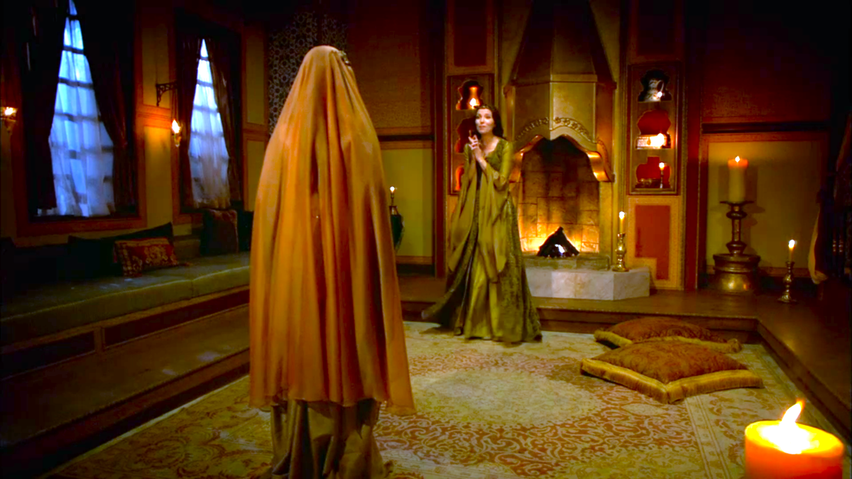 Подруга настаивает на запретном. Ночь. Душевные порывы против строгих порядков. Бывают ли настоящие подруги вообще? Об этом здесь. Хатидже боится идти на встречу с любимым. Она помолвлена с другим. Что плохого в невинном свидании с хранителем султанских покоев? Но в те времена любое занятие девушки кроме вышивания невинным не считалось. 😉 Если Хатидже за тайную встречу с мужчиной не особо пострадала бы, то её любимому Ибрагиму могла светить смерть. Однако Ибрагим передал через Гюльфем, что встретиться с Хатидже ему нужно обязательно прямо сегодня. А завтра может быть поздно. Хатидже спорит с Гюльфем, ведь ей нельзя. А может, она спорит с самой собой? Валиде строго воспитала Хатидже. И теперь та постоянно боится. Складывается впечатление, будто Хатидже боится жить. Оттого она несколько раз за всю историю "Великолепного века" шла на крайности. Но Гюльфем смотрит на ситуацию не в общем, а конкретно. Она намекает, что Хатидже может пожалеть, если не пойдёт на встречу с Ибрагимом. Ну, ещё