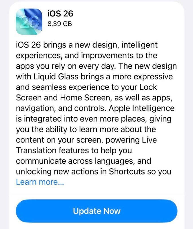 iOS 26 займёт от 5 до 17 ГБ памяти — размер апдейта зависит от модели айфона
