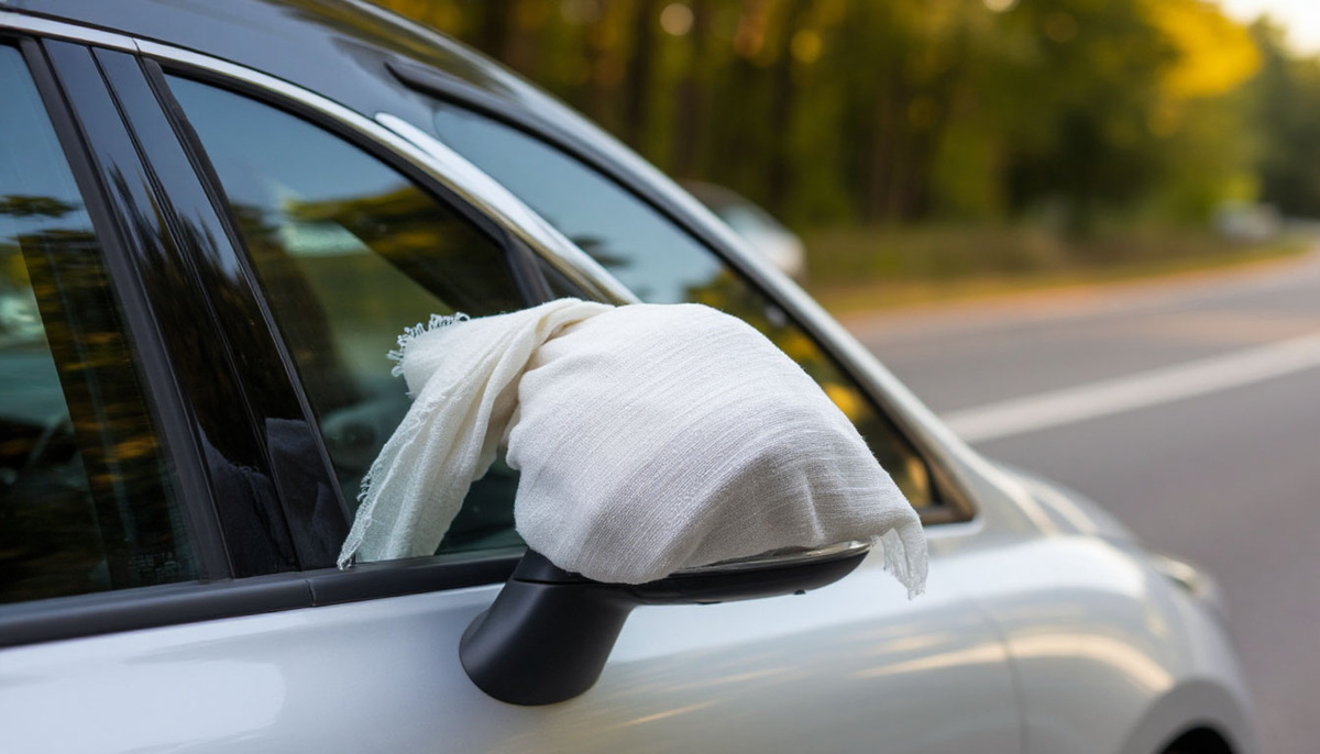 Многие водители уже привыкли находить в своих автомобилях странные записки или наклейки с надписями вроде «Продам» или «Паркуйся правильно». Но если однажды утром на вашем зеркале заднего вида окажется плотно намотанная тряпка или старая футболка — это может стать сигналом тревоги. Это не безобидная шутка подростков, а новый способ кражи, о котором всё чаще сообщают автовладельцы.