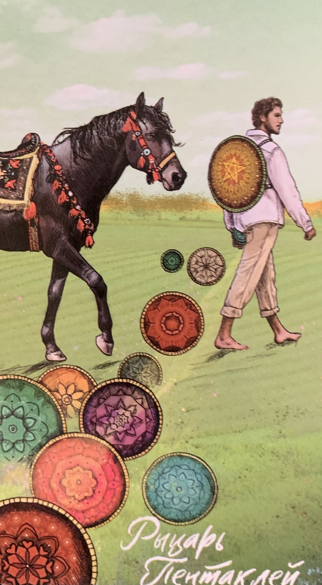 Иногда энергия этой карты так стабильна, что кажется однообразной, так что, если вам совсем не хочется двигаться с места, найдите радость в своем развитии и росте. Важен сам путь. Поверив в светлое будущее, вы найдете волнующий сердце энтузиазм. Рыцарь Пентаклей - карта бесконечного простора для действий. Верьте и не спешите - семена дадут всходы. Выполняйте планы и обещания, освобождайте любые застойные энергии на пути к мечтам.