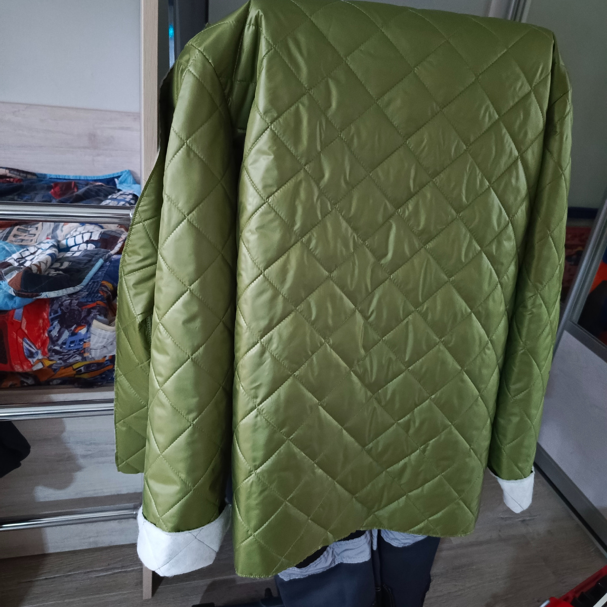 Три дня шью куртку. Первый день собрала верхушку из стежки. Во второй - подкладку. Там она из каризмы (это такой ворсованный трикотаж), которая соединялась с тонким утеплителем. А дальше самое веселое - куртку нужно было собрать и обработать по периметру бейкой. И вот тут меня ждало фиаско. Я ведь только что шила себе ватник по этой же выкройке. И никаких проблем не было. А тут... Целый день я билась и сдалась. Бейка из плащевки отказывалась ложиться так, как надо: Я специально сделала "черновик" для отработки навыка: Сначала было всё плохо, потом стало получаться. Пока я не перешла на куртку. Что бы я не делала: скалывала, смётывала - результат один. Лапки тоже меняла. Одну даже сломала ((( Но идеально бейка лежала только до того момента, как я начинала прокладывать строчку. А потом опять волны. В общем, молнию пристрочила кое-как - потом покажу. Пережить надо ))) Остальное буду сегодня вечером вручную пришивать. Пальцы, правда уже исколоты так, что иголку не удержать, но надо добить