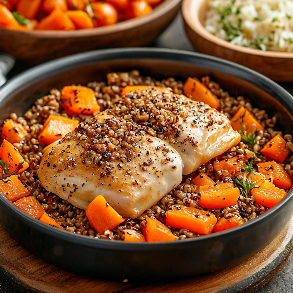 Приготовим сегодня куриное филе с гречкой в духовке – это простое, сытное и полезное блюдо, которое идеально подойдет для обеда или ужина. Начнем с подготовки ингредиентов: нам понадобится 350 г куриного филе, которое необходимо промыть и нарезать небольшими кубиками. Далее, очистим и мелко нарежем одну луковицу и одну морковь. Гречку тщательно промоем под проточной водой. В глубокой сковороде или кастрюле с толстым дном разогреем 3 столовые ложки растительного масла. Обжариваем лук и морковь до мягкости и золотистого цвета. Добавляем к овощам нарезанное куриное филе и обжариваем все вместе, помешивая, до тех пор, пока курица не побелеет. Солим и добавляем специи по вкусу. Подходящими специями будут черный перец, паприка, куркума или любые другие, которые вам нравятся. Высыпаем в сковороду промытую гречку и перемешиваем все ингред