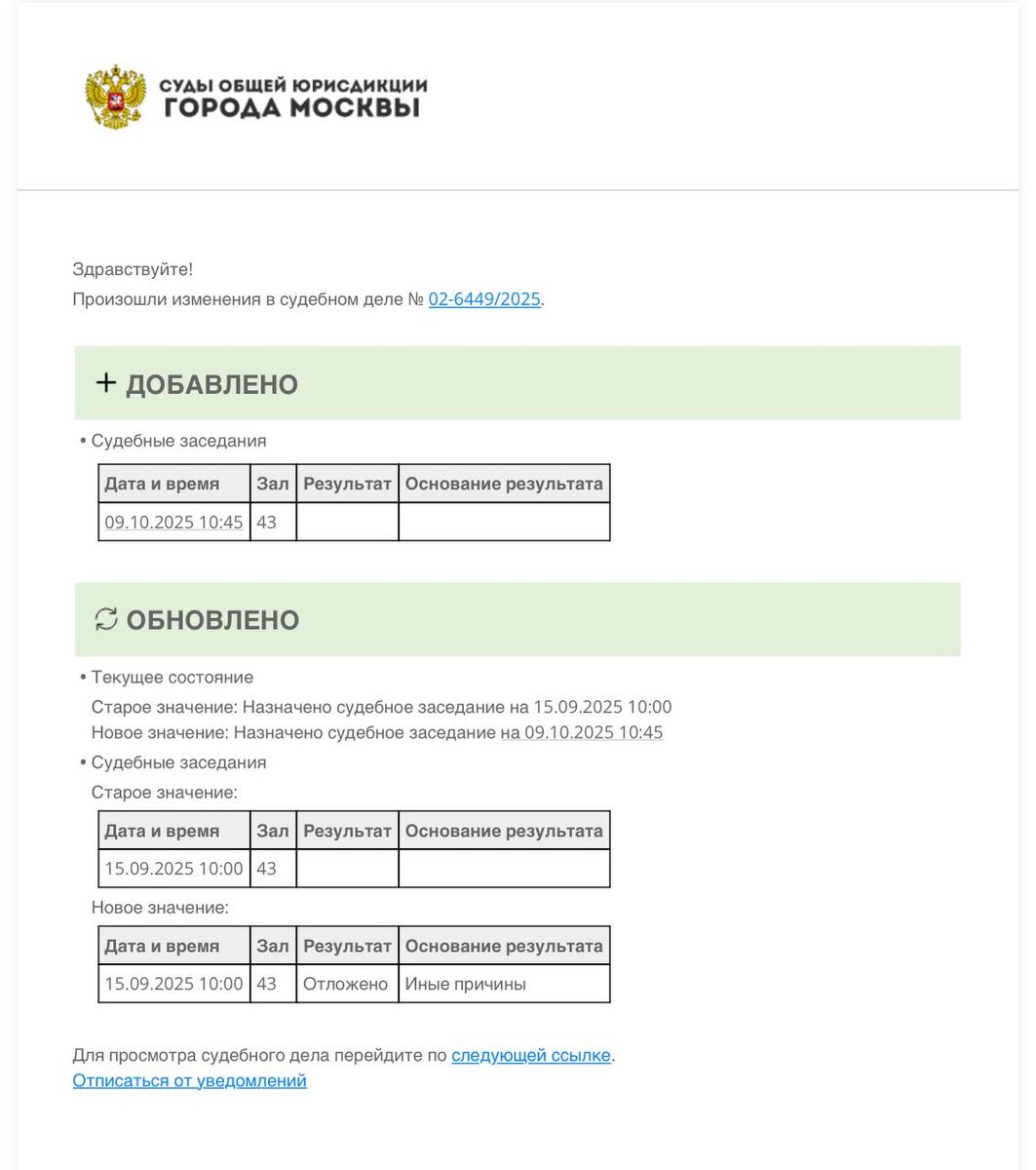 Что там по судам? 15.09.25 в Лефортовском районном суде должно было состояться всеми ожидаемое шоу-перформанс по отмене результатов электронного ОСС в ЖК «Профит» группой бумажных активистов. Однако, судя по материалам с сайта суда, заседание перенесено аккурат после слушания дела об отмене бумажного фарса. Давайте обсудим в комментариях, как такое могло произойти и к чему это ведёт?