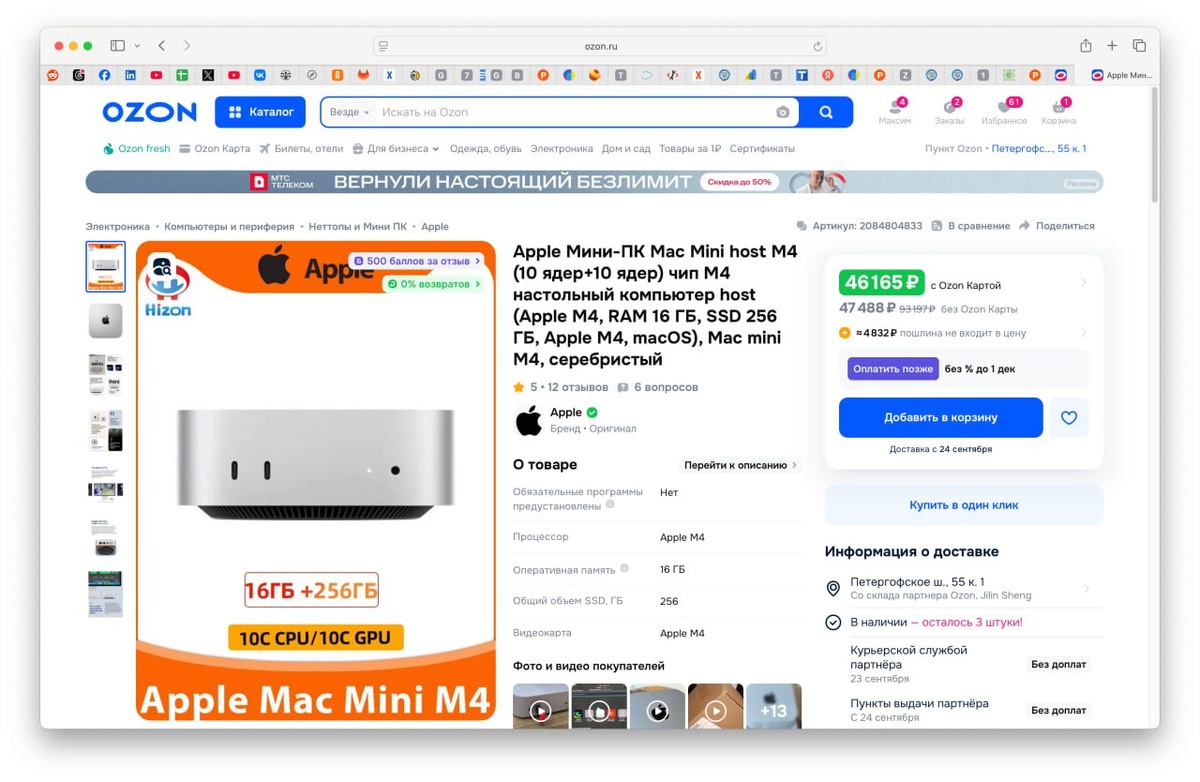 Идея как делать картинки для товаров практически бесплатно. Покупаете бесшумный Mac Mini M4 (у меня на работе такой, с него пишу). На него ставите ИИ Stable Diffusion 1.5 - работает из коробки, скорость генерации зависит от модели и настроек, но обычно одна картинка 512 на 512 выходит за несколько секунд, а тяжелые модели могут рисовать десятки секунд или минуту. Простой ориентир: SD 1.5 часто укладывается примерно в 3–6 секунд на 512 при 20–30 шагах, SDXL и Flux заметно медленнее и требуют больше времени без специальных ускорителей. В итоге, теоретически, делая картинку 1024 * 1024 на таком ПК за 50к (озон продает), в месяц вы получите порядка 40–130 тысяч изображений, в зависимости от точных настроек и оптимизаций Core ML и PyTorch Metal... Грубо вам одно изображение будет стоить 0.5 руб в первый месяц владения. А потом - ноль рублей :) Русский ИТ бизнес