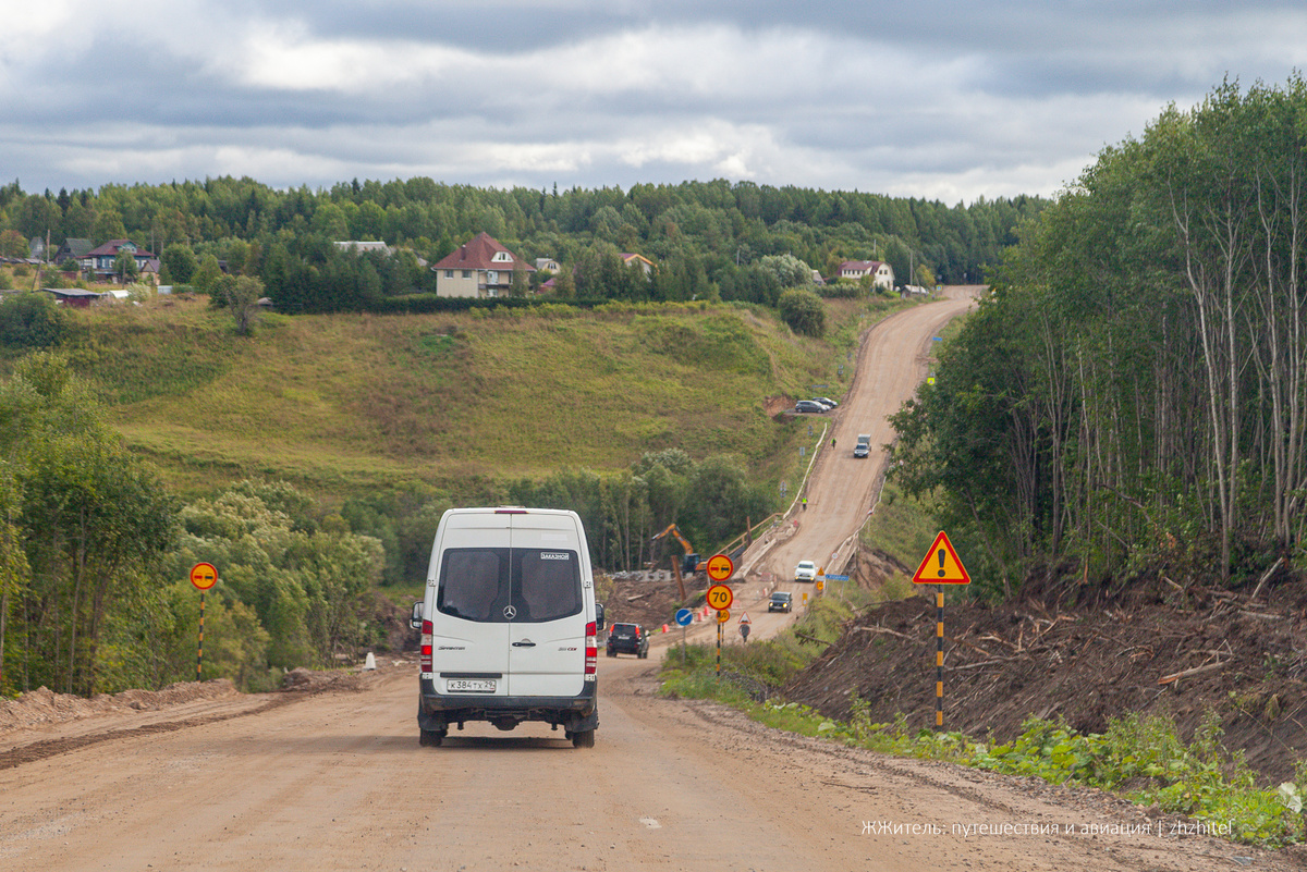 Из Москвы в Архангельск можно доехать по хорошей федеральной трассе М-8. А вот если поехать по области в отдаленные районы, дороги совсем другие. Этим летом мы отправились из Архангельска в Мезень, и я покажу как выглядят дороги Русского Севера. По Яндекс картам от Архангельска до Мезени 390 км. При этом нужно понимать, что большая часть пути — это не асфальт. А скорость движения по грунтовкам сильно зависит от погоды и прохода грейдера. Первая остановка на кофе и туалет в придорожном кафе. Кафе тут расположены очень редко. Больше всего поразило, что стены исписаны строками Блока: «Умрешь — начнешь опять сначала, и повторится все, как встарь: ночь, ледяная рябь канала, аптека, улица, фонарь». Местами дорога исключительно живописная, особенно красивый вид в районе Голубино. Неожиданно на обочине замечаю гигантскую птицу. Померещилось? Нет, не померещилось. Такие арт-объекты недавно установили около некоторых населенных пунктов. По пути попадаются населенные пункты. Дом в Пинеге. Бух
