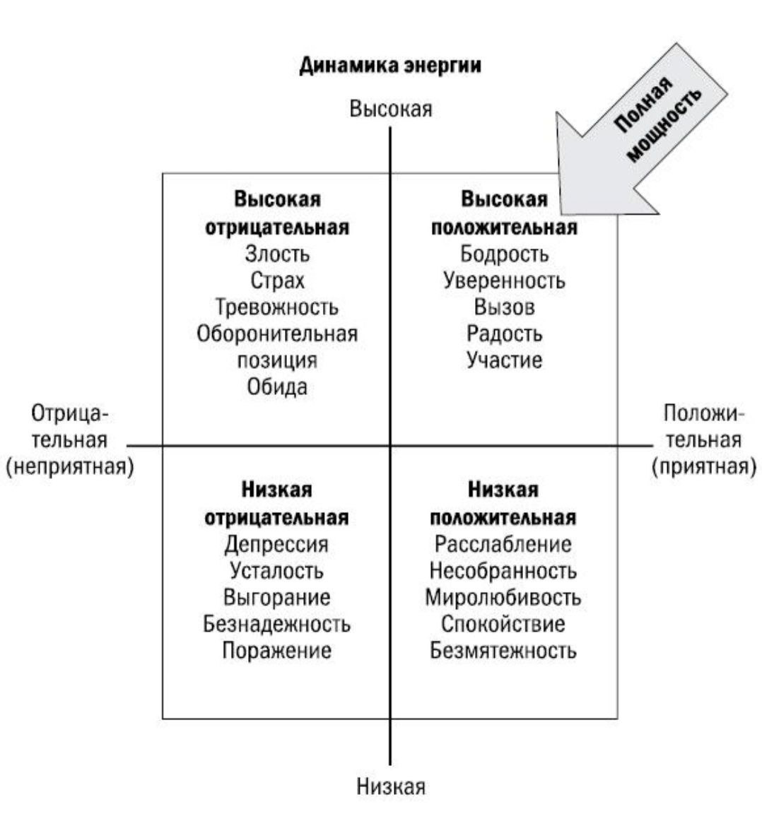 На сессиях тревожники очень часто жалуются на то, что у них ни на что «нет энергии»🪫 Кажется, что силы уходят на постоянные переживания, мысли о будущем, прокручивание негативных сценариев. Но если взглянуть глубже, тревожность - это не про отсутствие энергии, а про её искажённое направление. Объясню, на примере схемы из книги «Жизнь на полной мощности» Джима Лоэра и Тони Шварца📚 На самом деле в тревоге очень много силы: это высокая энергия, окрашенная в отрицательные тона. Она активирует организм, ускоряет мысли, подталкивает к действию - но в деструктивном ключе, через страх, напряжение и избегание. Хорошая новость в том, что эту энергию можно перенаправить. Если перевести её из «высокой отрицательной» зоны в «высокую положительную», она станет мощным топливом для уверенности, активности и радости. И ощущение постоянного упадка сил - пройдет🔋 Ну и конечно же ниже несколько способов, как это сделать: 1. Осознанное телодвижение. Когда тело застревает в тревожном напряжении, энер