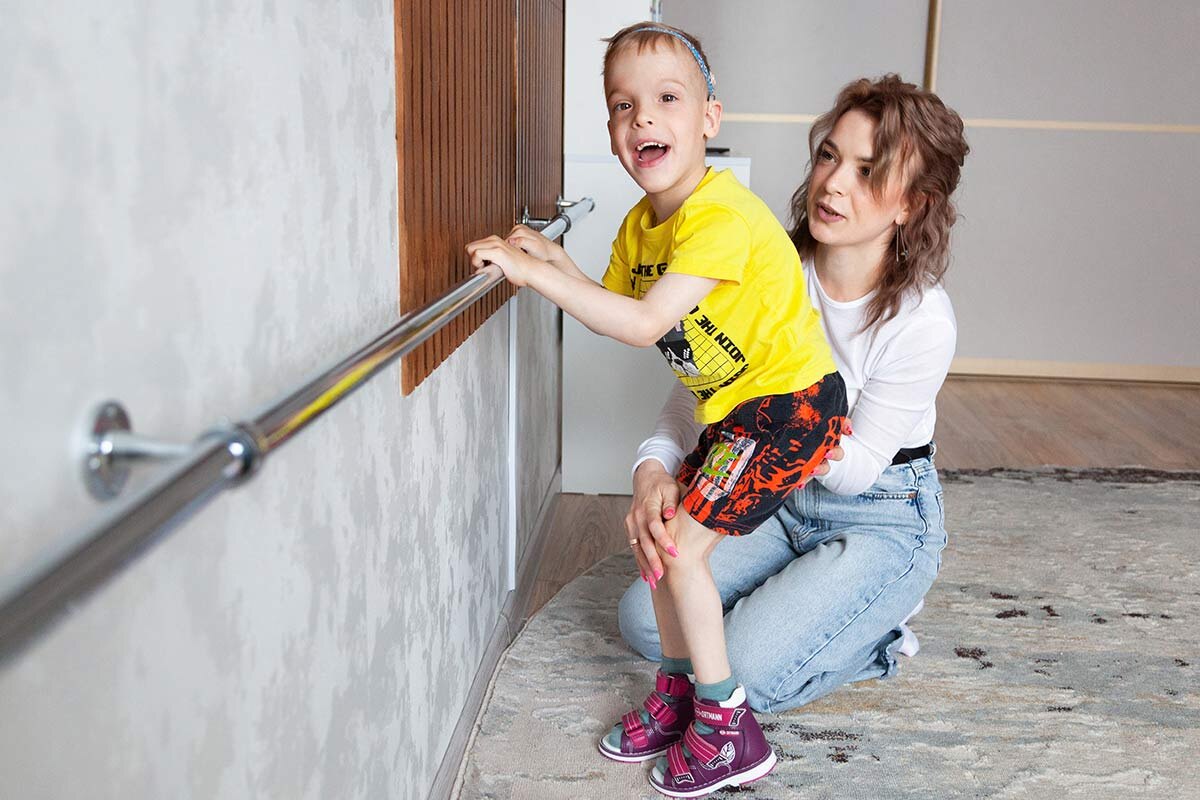 Ольга Мухина – миниатюрная женщина ростом 150 сантиметров, и ей с каждым днем все тяжелее поднимать Максима. Он весит уже около 14 кг. Когда муж на работе, ей самой приходится ставить сына в вертикализатор, мыть. Поэтому каждый шажок Максима к самостоятельности – большое облегчение для его родителей.