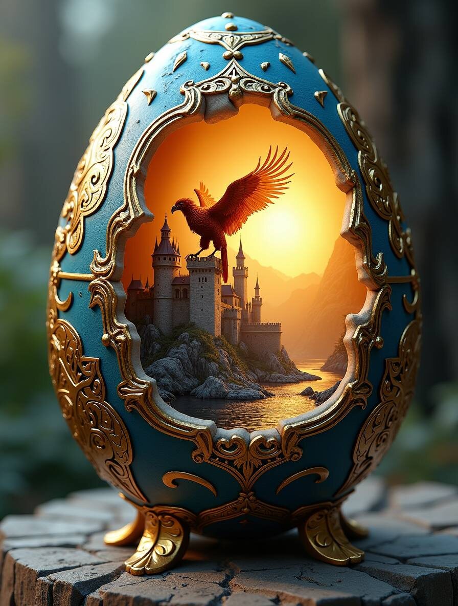 Яйцо с волшебным миром внутри и птицей. Нейросеть: Leonardo. Preset: Lucid Origin.