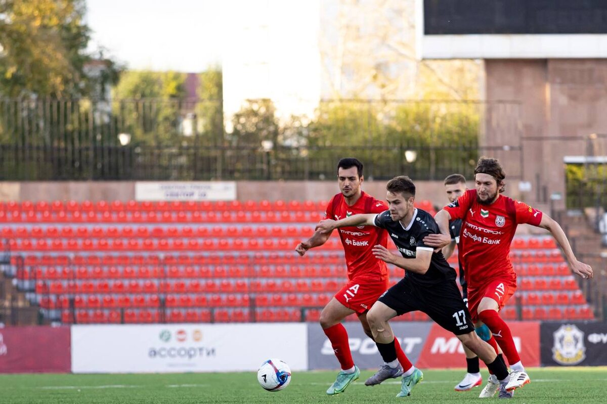 «Тюмень» не дожали В матче девятого тура первенства России по футболу в «золотой» группе дивизиона «А» второй лиги пятигорский «Машук-КМВ» на выезде мерился силами с «Тюменью». Результативный поединок победителя не выявил. К 29-й минуте южане вели со счетом 3:0 – голы у «курортников» забили Денис Богомолов, Анзор Хутов и Иван Селеменев. Однако еще до перерыва хозяева сократили отставание до минимума, а во втором тайме сравняли счет, ничья – 3:3. Этот мирный результат позволил кавминводскому коллективу завершить первый круг соревнований в качестве единоличного лидера. В следующем туре «Машук-КМВ» на своем поле в субботу, 20-го сентября, сыграет с новосибирской «Сибирью».