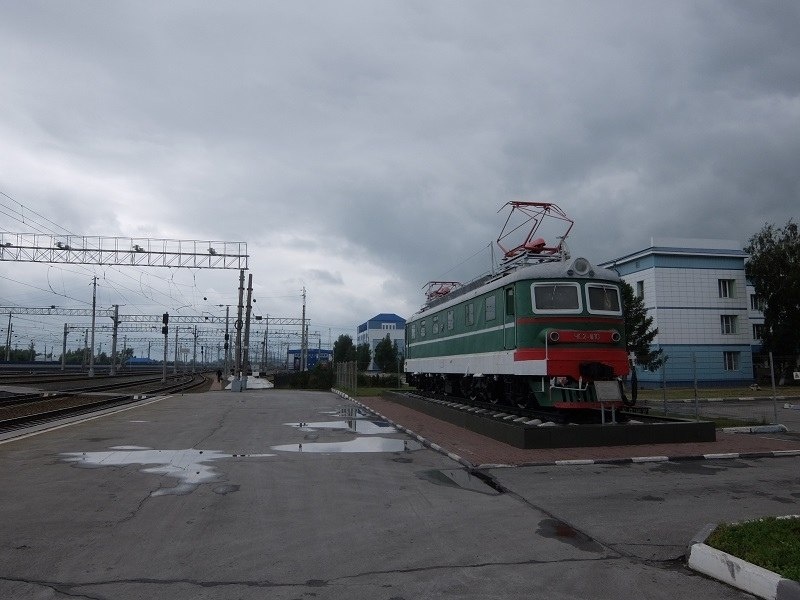 Электровоз-памятник ЧС-2. Этот экземпляр — вроде как один из последних эксплуатировавшихся ЧС-2 в России. Снят с линии относительно недавно, в 2009-м, после чего сразу был поставлен сюда.