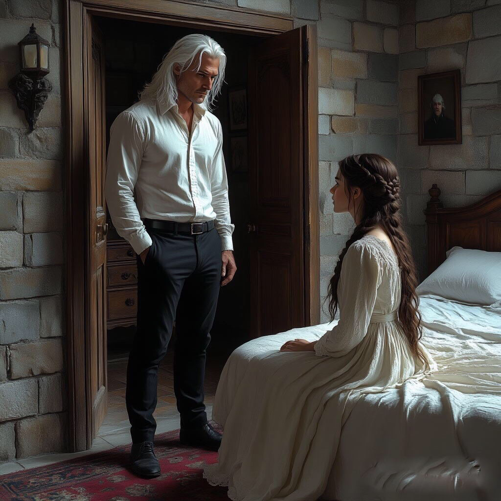 Глава 29 Ночь опустилась на их лесное убежище, окутав его бархатным покровом, сквозь который пробивался лишь серебристый свет луны. Воздух был наполнен ароматом ночных цветов и трепетным ожиданием. Лотор стоял на пороге спальни, его высокий силуэт вырисовывался на фоне лунного света. Его белые волосы, обычно такие идеальные, теперь были слегка растрепаны, а в глазах горел тот самый огонь, который видели лишь немногие — огонь желания, одержимости и бесконечной преданности. Келейос сидела на краю кровати, завернутая в простыню, которая казалась ей вдруг невероятно грубой по сравнению с едва уловимым прикосновением его взгляда. Она чувствовала, как его магия — та самая, темная и могущественная — начинала пульсировать в воздухе, переплетаясь с ее собственной, светлой и исцеленной. — Подойди, — прошептала она, и ее голос прозвучал как шелест листьев в ночной тишине. Он сделал шаг, затем еще один — бесшумно, как хищник. Его пальцы коснулись ее щеки, и она вздрогнула от конт